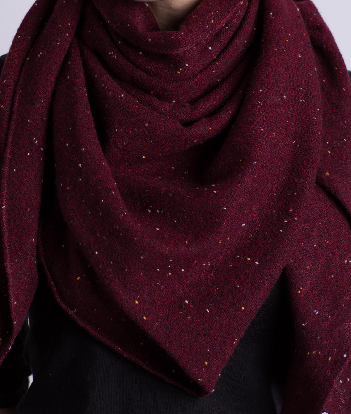 Großer Triangle-Schal in der Farbe „in Beerenrot mit roten Tupfen“ aus